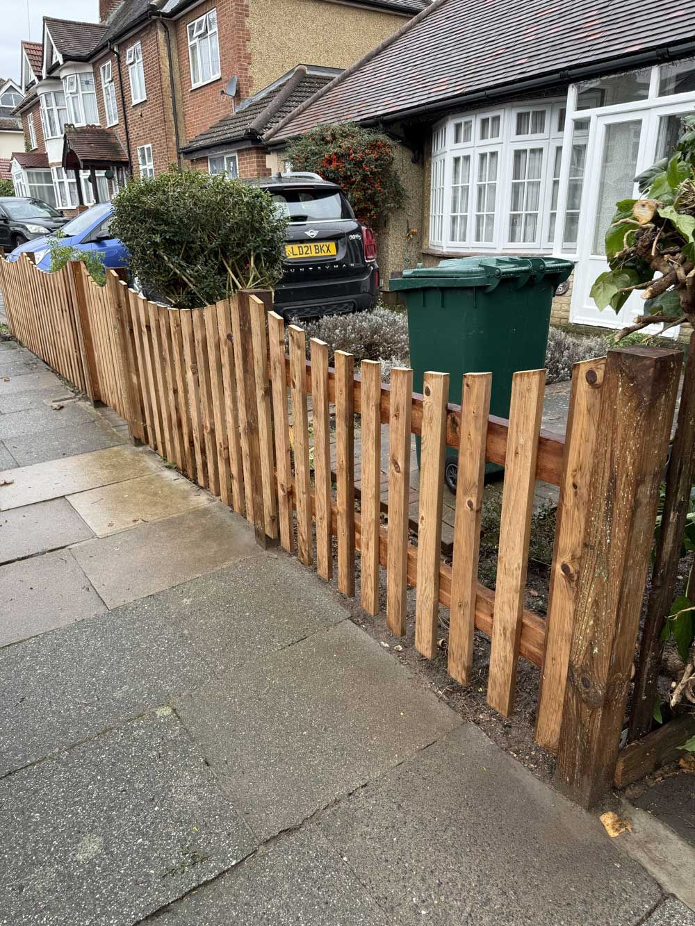 - Traditional timber feather edge fencing.